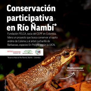 En los Andes Tropicales la iniciativa es liderada por el Equipo Regional de Implementación -RIT- el cual está conformado por Patrimonio Natural en Colombia, Profonanpe en Perú, ACEAA en Bolivia y Futuro Latinoamericano en Ecuador. El objetivo del Fondo es apoyar con donaciones a organizaciones de la sociedad civil que trabajan en la conservación de lugares estratégicos para la biodiversidad. Específicamente, el CEPF concede donaciones a organizaciones no gubernamentales y del sector privado, así como a individuos, para que puedan conservar ecosistemas críticos, ubicados en “hotspots” o “sitios calientes” de biodiversidad. Los recursos llegan directamente a grupos de la sociedad civil para fortalecer la conservación, en trabajo conjunto con socios gubernamentales